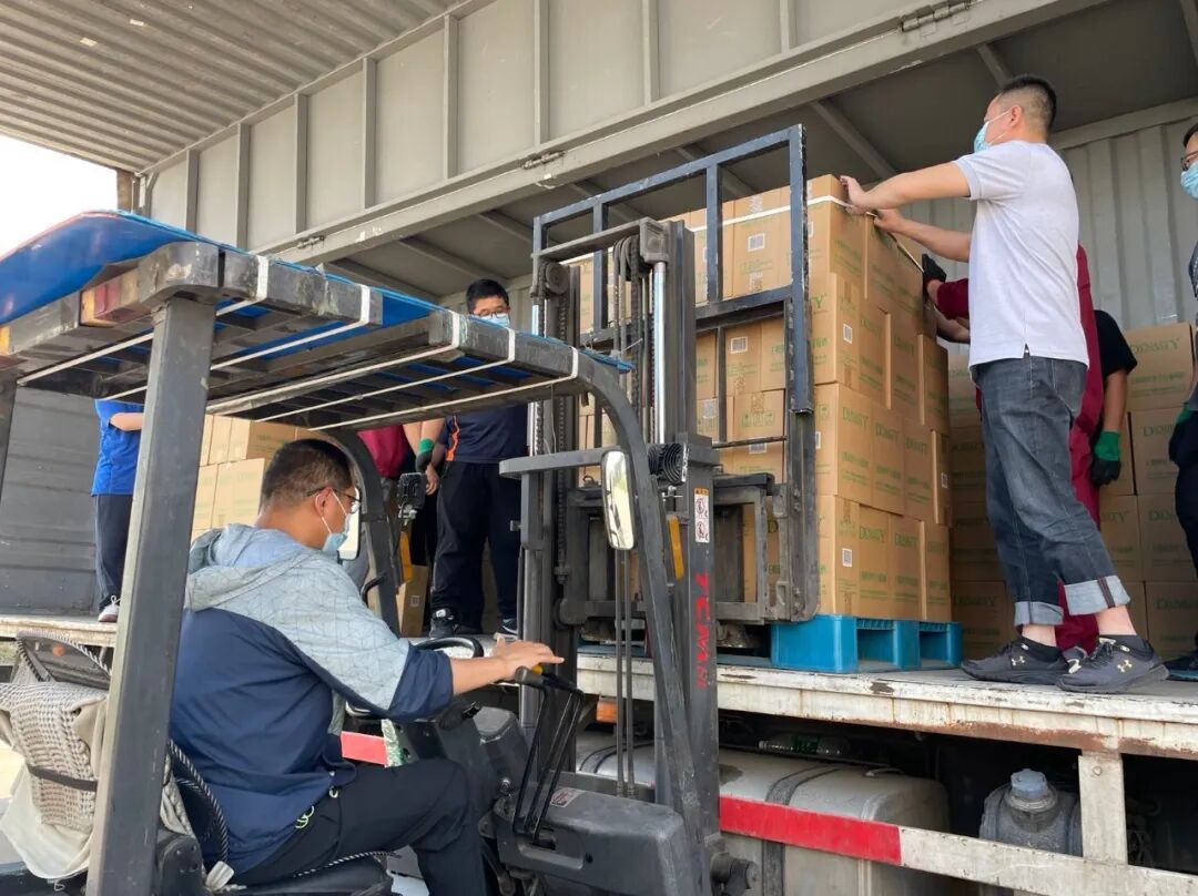 整个仓储区发货现场一片繁忙景象,叉车穿梭在仓库和货车之间,有条不紊的完成转运、装运工作;装卸人员拆垛、传箱、码垛一连串动作一气呵成、配合默契。尽管现场温度随着时间的推移节节攀升,再热再累都没有人懈怠,挥汗如雨的面孔、汗水打湿的衣衫,高昂的热情恰似如火的骄阳,构筑了一道动人的风景。