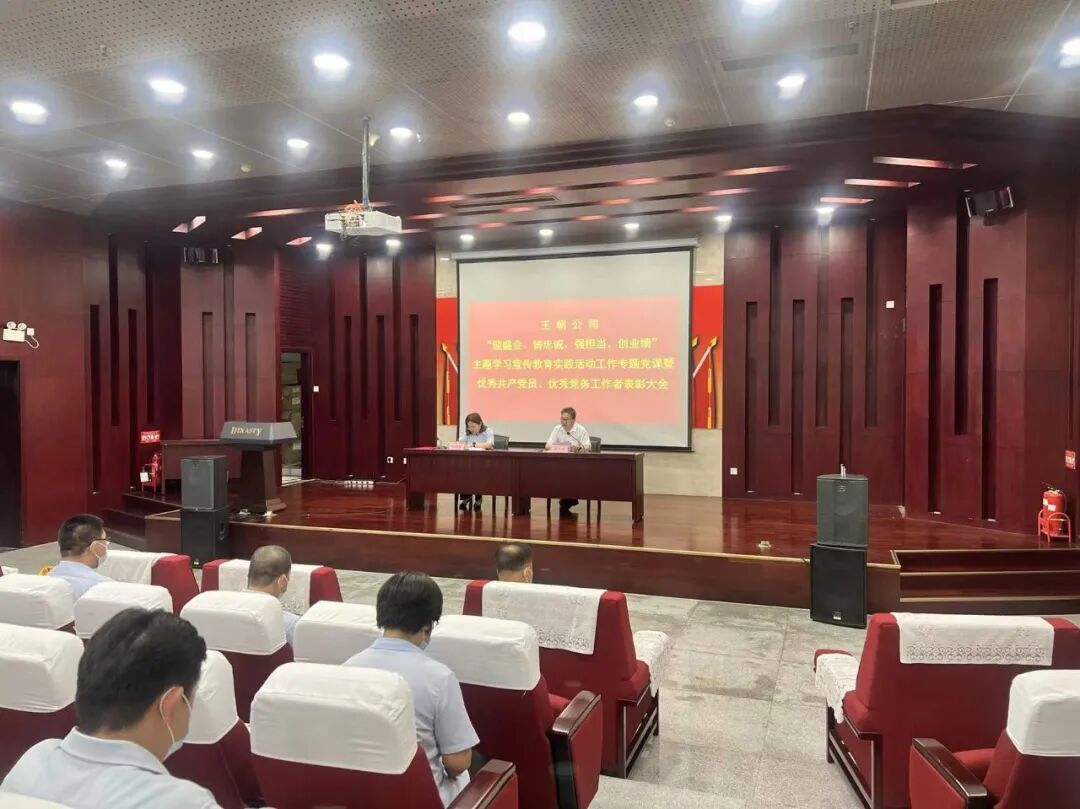 ❖ 迎盛会 铸忠诚 强担当 创业绩 为深入学习贯彻天津市第十二次党代会精神,扎实开展“迎盛会、铸忠诚、强担当、创业绩”主题学习宣传教育实践活动工作,筑牢政治忠诚、强化使命担当,7月12日下午,王朝公司组织开展了“迎盛会、铸忠诚、强担当、创业绩”主题学习宣传教育实践活动专题党课暨优秀共产党员、优秀党务工作者表彰大会。公司领导班子成员、中层干部、所属企业领导班子和各支部委员参加会议,会议由公司党委副书记、工会主席赵海静主持。 会上,隆重表彰了王朝公司优秀共产党员和党务工作者,公司领导为获奖个人颁奖。公司党委副书记、总经理李广禾以《守初心铸忠诚 夯实基础谋发展 开创王朝公司改革发展新局面》为题,从全面领会和准确把握市十二次党代会精神、深入开展主题学习宣传教育实践活动各项工作再上新台阶、党建引领发展统筹做好当前工作三个方面,为与会党员干部讲授专题党课。 01 表彰优秀