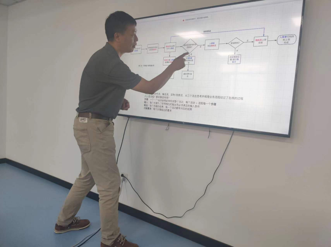 为了保证会议的高效,会前精益管理办公室对相关部门做了充分的调研工作并收集了流程中大家关注的问题点。会上,专家老师给大家讲解了流程梳理的方法,包括流程的输入、输出、边界及梳理的三个步骤,引导大家去思考三个流程的完整性。